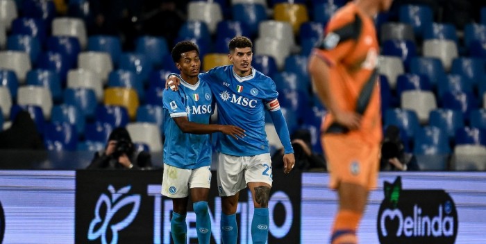Alla prima vera occasione della gara, il Napoli passa avanti con la cavalcata di Neres verso la porta, innescata da un rapido gioco a tre. Immediato il raddoppio, firmato dal diagonale repentino di David Neres sul passaggio verticale di McTominay. C’è spazio anche per il 3-0 con il colpo di testa di Lang sul cross di Di Lorenzo. All’alba della ripresa, McTominay sfiora anche il poker: solo una grande parata di Carnesecchi gli nega la rete. È la volée vincente di Scamacca, sul cross di Bellanova, a dare nuova linfa alla partita. Qualche minuto dopo, De Ketelaere va vicino al 3-2 con un gran tiro a giro che sibila di poco sopra la traversa. Doppia occasione di Scamacca per accorciare le distanze: prima con tiro fulmineo costringe Milinković-Savić ad un grande intervento, poi di testa prende in controtempo il gigante serbo, ma la palla termina al lato.